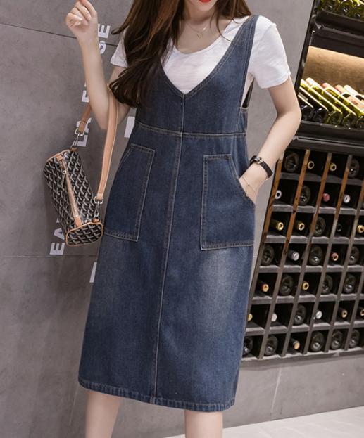 Джинсовый сарафан с v-образным вырезом