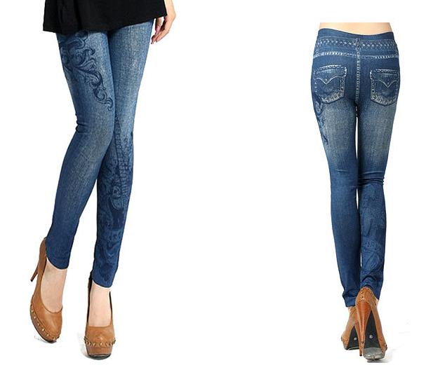 Леггинсы с имитацией джинс с рисунком